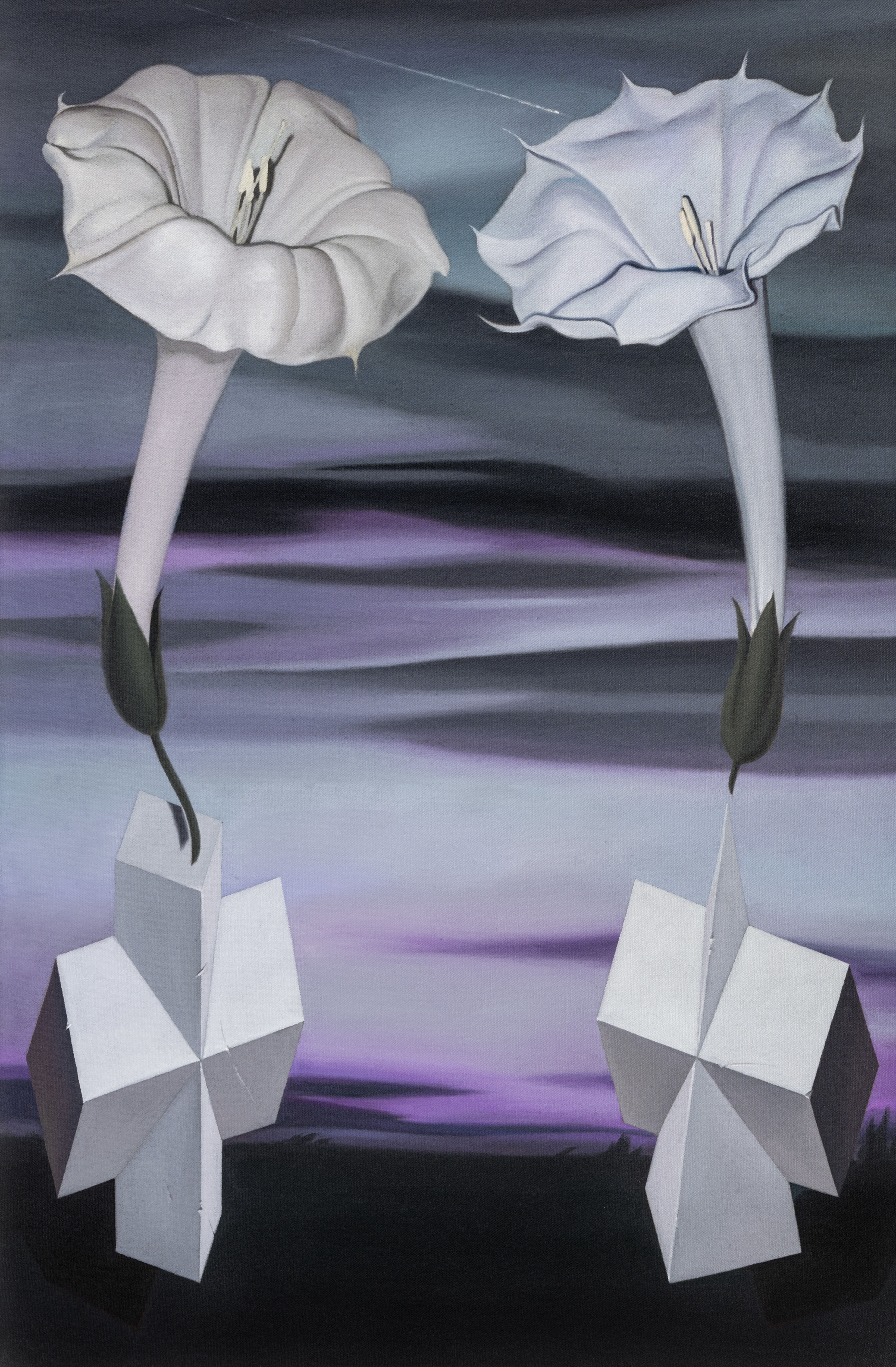 Q1:想从在伯年艺术空间第一次见到你的作品开始聊起,当时作品被气泡膜包着,但能隐约看见画面的样子。你那时的画让我想到了欧姬芙,后来跟你聊到,你说不少人也这么说,可你那个时候都不知道欧姬芙是谁,这让我觉得很有趣。包括你其实并不是绘画专业出身,但你的创作状态从那时到现在可以说越来越好,你是否可以简单聊聊你的创作经历呢?